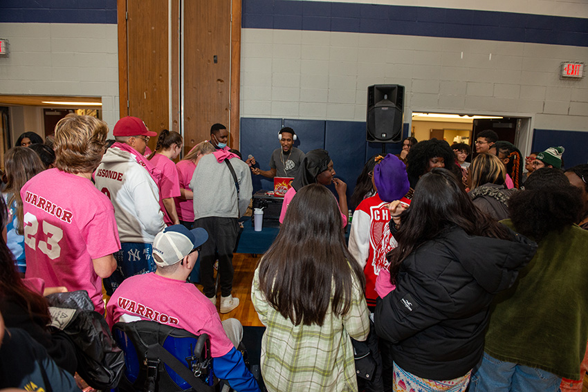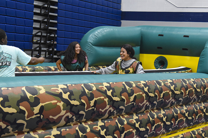 Beyond board games, students could get their faces painted or work on crafts. In the gymnasium, an inflatable obstacle course was set up, where students competed against each other. The courts were open with volleyballs and nets and basketballs for students to use in games. Students were welcome to stay until well past midnight.