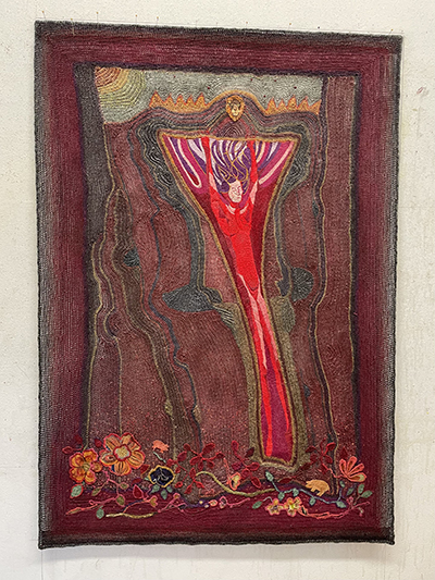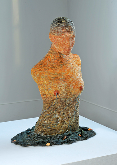 Norma Minkowitz showcases two sculptures and a wall piece. As a fiber artist, she incorporates her skills in crochet, knitting and sewing into her work. Conceptually, her inspiration is rooted in “the traditional mysteries of nature as well as human nature.”