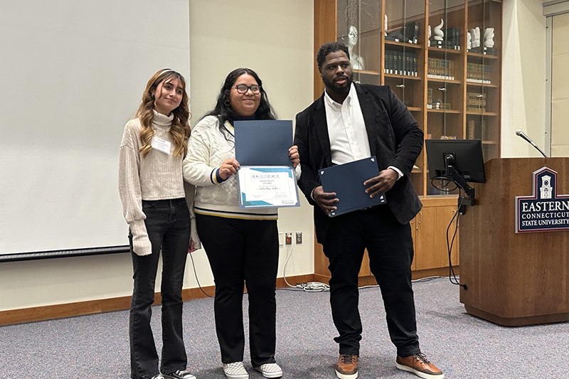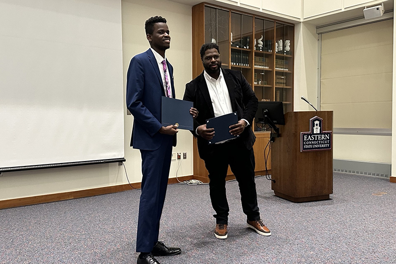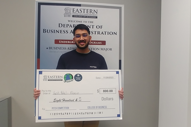 Entrepreneurial students at Eastern Connecticut State University pitched their projects to judges at a recent Department of Business Administration competition, with junior Kush Patel winning first place for an English-as-a-second-language (ESL) application he developed based on his own experience.