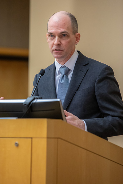 The University Meeting also heard from Senate President William Lugo, professor of sociology, who reviewed the Senate’s upcoming activities, which include legislative advocacy and future resolutions to be voted on and introduced at the senate meeting on Jan. 30.