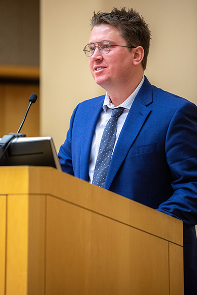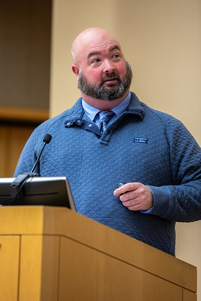 Ryan Quigley, interim director of University Relations, discussed the University's diversified marketing plan to attract prospective students. "We're chasing an audience, not a platform," he said about having a presence on all the major social media platforms, each appealing to different audiences and age groups. Social media allows Eastern to “humbly brag" and build community, he said, about the activities on campus and accomplishments of faculty and students.