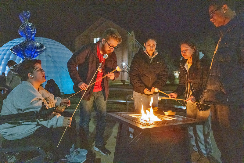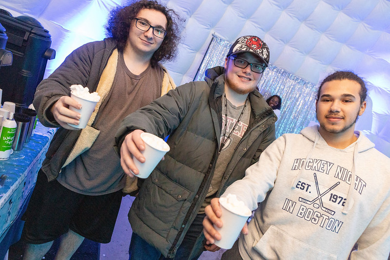 The evening events took place in Hurley Hall and in an inflatable igloo outside. A special dinner menu was served in Hurley, and a hot chocolate bar was available inside the igloo along with a photo booth. DJ Fire spun tunes inside Hurley, and students enjoyed s’mores outside.
