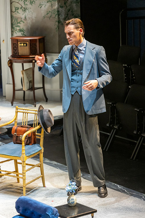 Eastern’s rendition of "Blithe Spirit" took the form of a drawing room play, with all events taking place in the abode of Charles and his indignant second wife Ruth (Jasmine Clark ‘24), for which the Belmonte Studio Theatre was decorated to fit the tastes of the 1940s.