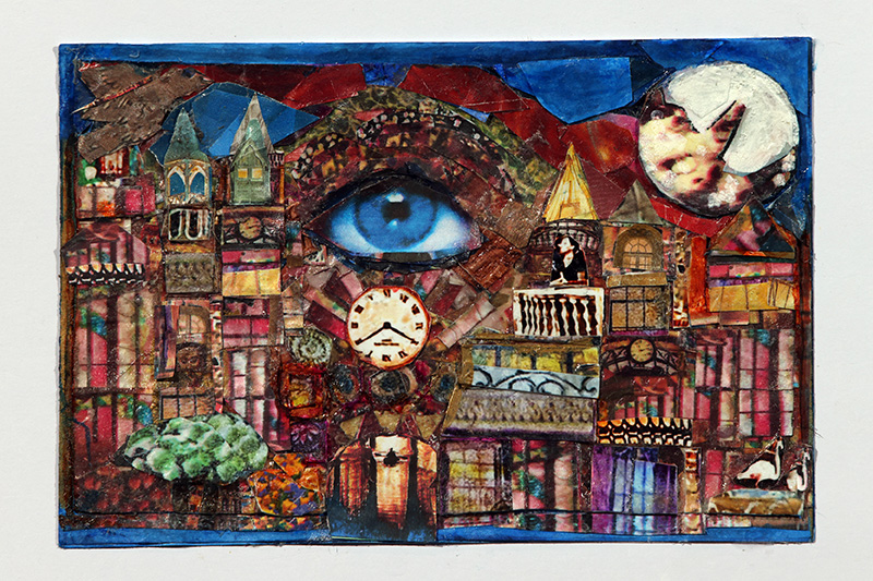 Collage, a term originating from the French “papier collé” — translated as “glued paper” — is a technique where various elements are composed on a surface. The NCS works to advance “the stature of collage as a major art medium,” according to their website.
