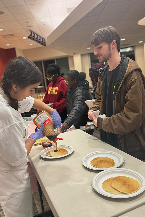 “I would say this job is a joyful experience,” said Williams. “Altogether, we collaboratively decide on what to do for each event and enjoy seeing students at Eastern delighted with each pancake given. I would say that our commitment, teamwork and dedication make this job possible.”