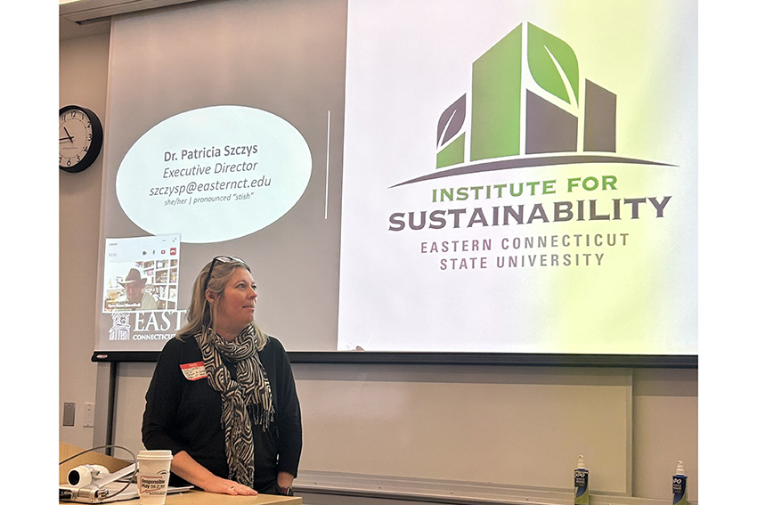 Patty Szczys, professor of biology and director of Eastern’s Institute for Sustainability, spoke alongside her colleague Michael Goodnough on behalf of the New England Sustainable Cannabis Certification (NESCC). The organization equips and certifies businesses to cultivate cannabis for ecological solutions such as the ones Vassar referenced.