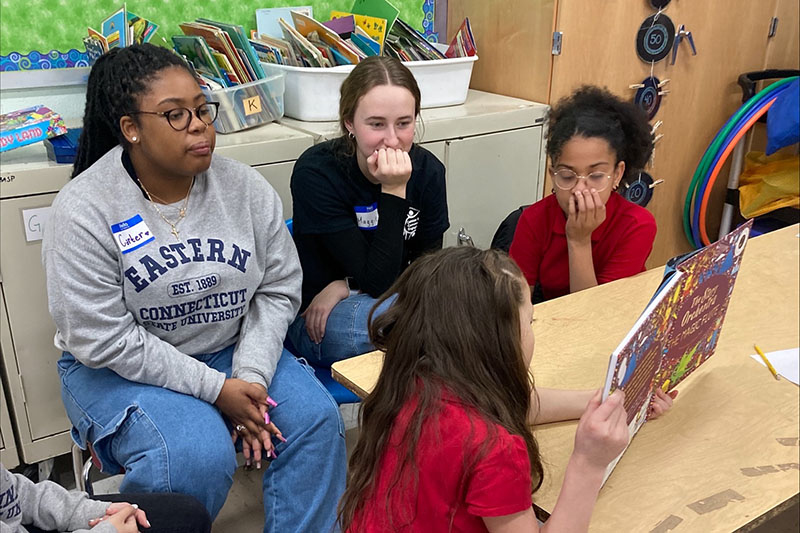 The readings continued into the spring 2024 semester as a collaboration between Eastern’s Music Department and the Center for Community Engagement (CCE). From Feb. 21 to Feb. 28, CCE student volunteers read “The Magic Flute” to students at five elementary schools in Windham.