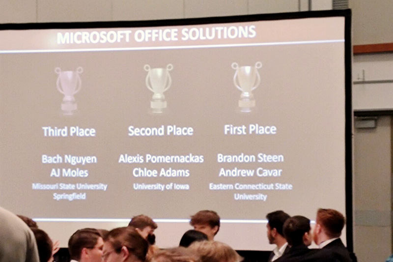 The Microsoft Office Solutions contest asked students to utilize products and features within Microsoft software, including Word, Excel, PowerPoint and Access. They were asked to create an end-to-end data management/presentation solution, which was evaluated for analysis and sophistication.