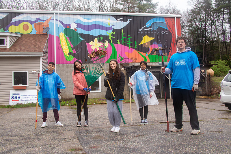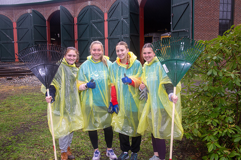 Student leader Jayson Caballero and his team did some raking and mulching at the Railroad Museum, which he described as, “A great chance to learn more about the Willimantic community and its history,” as well as a great volunteer experience.