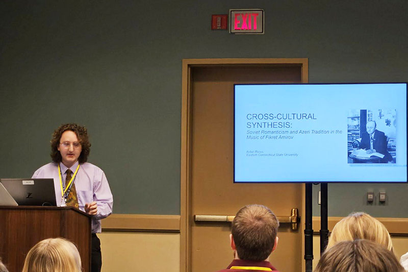 Reiss presented his study on musicology and culture, titled “Cross-Cultural Synthesis: Soviet Romanticism and Azeri Tradition in the Music of Fikret Amirov.” According to Reiss, his numerous experiences with conferences and the aid of Professor Canavan helped him solidify his academic and professional goals in musicology.