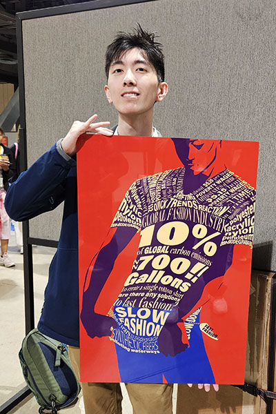 “My research included information about the global issue of Fast Fashion, and introduced the topic through a typographic poster, a medium that allowed me to visually display the idea of an unsustainable process that exploits the worst of our practices,” said Ng. “This conference was an incredible opportunity to connect with fellow undergraduate students from not only across the country, but from around the globe. I thoroughly enjoyed speaking with the many different people in attendance. I also discovered new ideas and methods that I think would ultimately enrich our lives.”