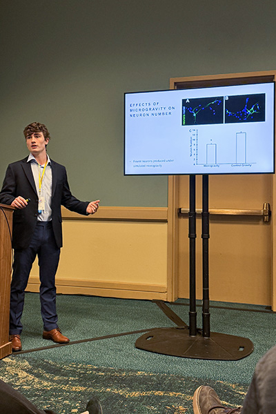 “The conference was a great opportunity to share my research and see all the amazing research being performed by other undergraduates across the country,” said John O’Connell, who gave an oral presentation on his research project, titled “Impaired Neurogenesis Following Simulated Microgravity.”