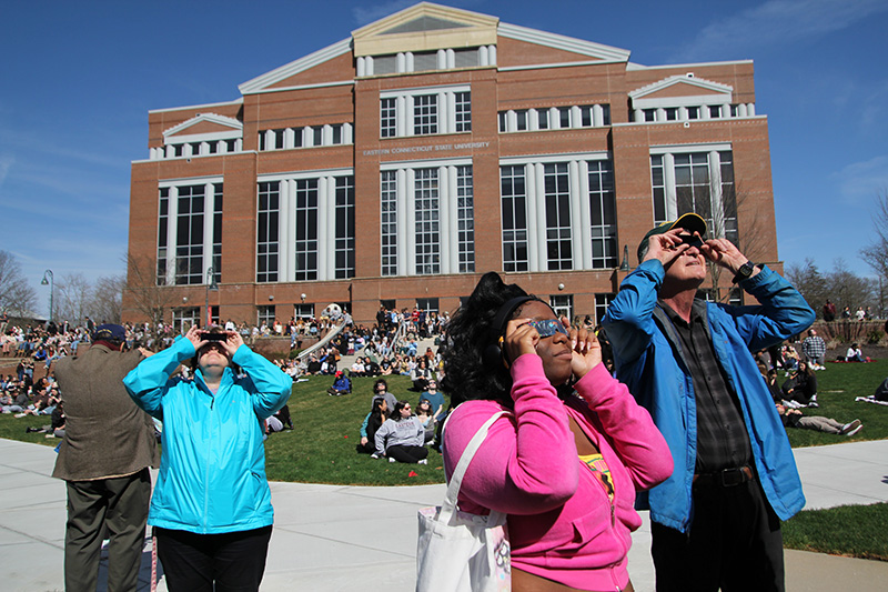 On April 8, 2024, the Great North American Eclipse captivated hundreds of starry-eyed Eastern Connecticut State University students on Webb Lawn as the sun and moon merged at 3 p.m.