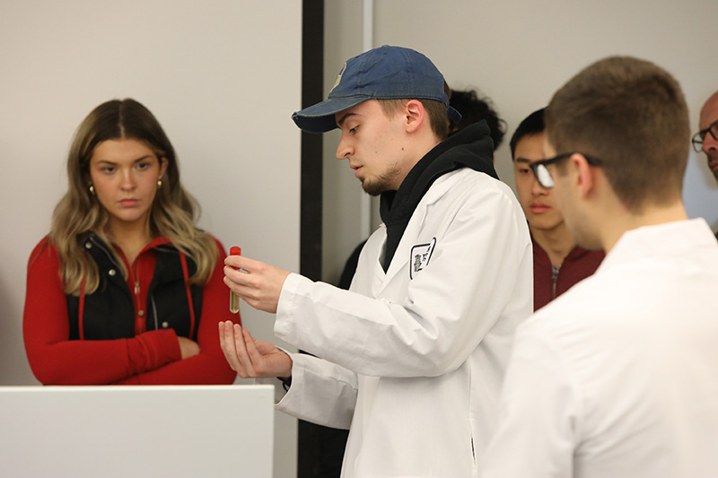 For the third year, students from Norwich participated in lab demonstrations and learned about undergraduate research from students in Professor Jonathan Hulvey’s general microbiology class. The Norwich students brought dirt samples they collected near their school to Eastern to be analyzed as part of a national Tiny Earth effort to discover antibiotics from soil bacteria. The program involves 517 higher education institutions looking for new sources of effective antibiotics.