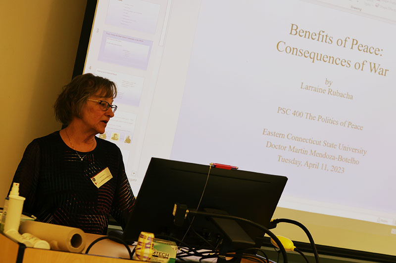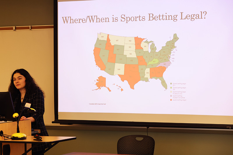 The event was a great success and showcased presentations from nine students representing nine majors at Eastern, all with work in political science. The presenters provided valuable insights on a diverse range of topics, including immigration, racial identity, LGBTQ+ issues domestically and internationally, the political significance of peace, sports betting legislation and artificial intelligence in the social sciences. The event drew a crowd of more than 50 people.