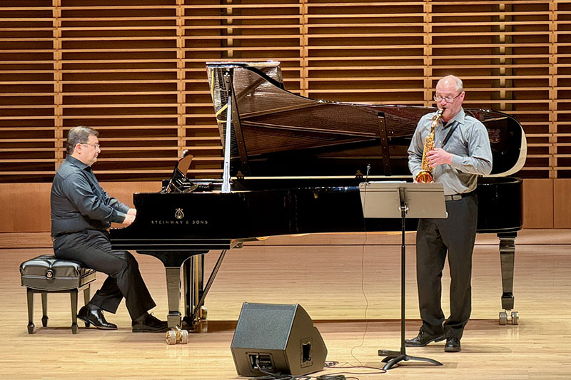 Josh Thomas, lecturer of music at Eastern Connecticut State University, recently performed a recital of world premieres for each voice of the saxophone. Alongside accompanist and music lecturer David Ballena, Thomas performed these solos March 2 in the Fine Arts Instructional Center Concert Hall.