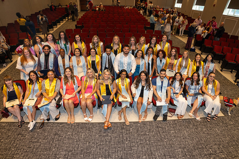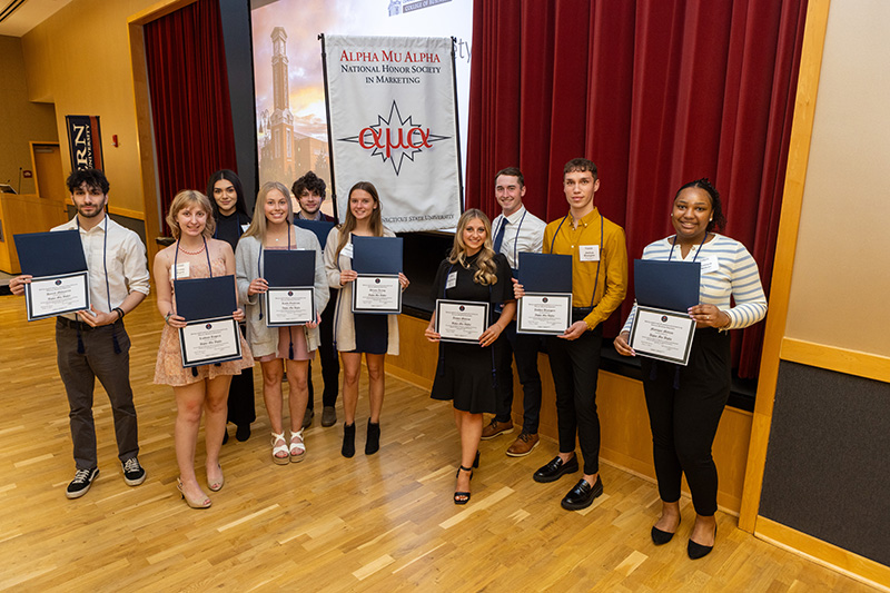 The College of Business held its annual honor society ceremony on April 17 in the Student Center's Betty R. Tipton Room. The event included inductions for the Delta Mu Delta business honor society, Omicron Delta Epsilon economics honor society and Alpha Mu Alpha marketing honor society.