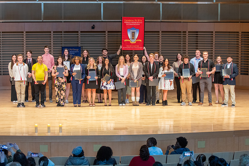The Department of Communication, Film, and Theatre held its annual honor society ceremony on April 18, 2024 in the Fine Arts Instructional Center. This year's ceremony included induction into the Lambda Pi Eta national communication honor society and Eastern's inaugural induction for the Alpha Psi Omega national theatre honor society.