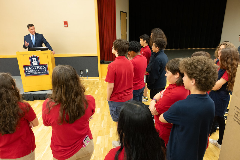 The Institute for Sustainability at Eastern Connecticut State University partnered with the Charles H. Barrows STEM Academy to spotlight a new generation of sustainability advocates on June 6. For the second consecutive year, dozens of eighth grade students filled the Student Center's Betty R. Tipton Room with research related to sustainability and human rights issues.