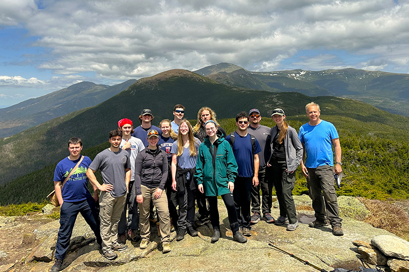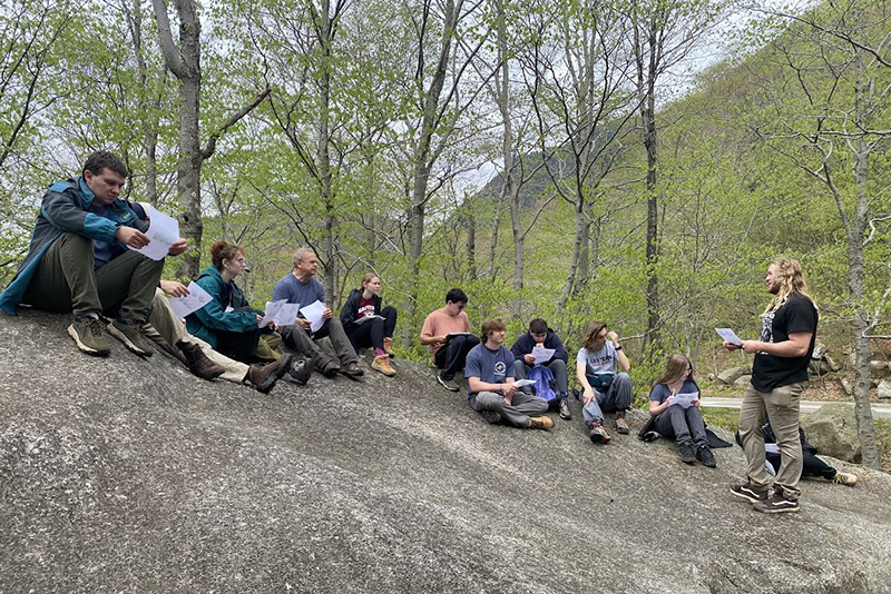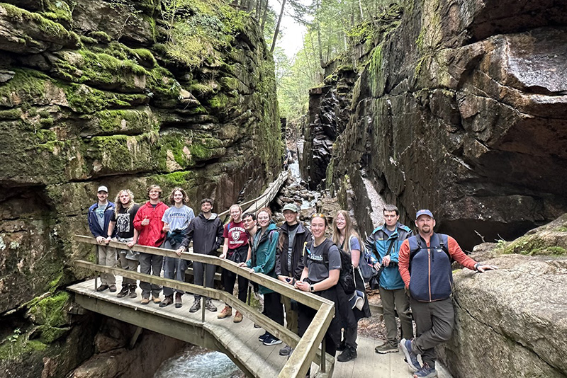 Twelve students from Eastern Connecticut State University beheld many environments on a 12-day scientific excursion through New Hampshire and Maine in late May. Sponsored by the Department of Environmental Earth Science (EES), Professors Dickson Cunningham, Bryan Oakley and Drew Hyatt guided students through high mountains, deep caves and sprawling coastlines as a part of their “Summits and Seashores” course.