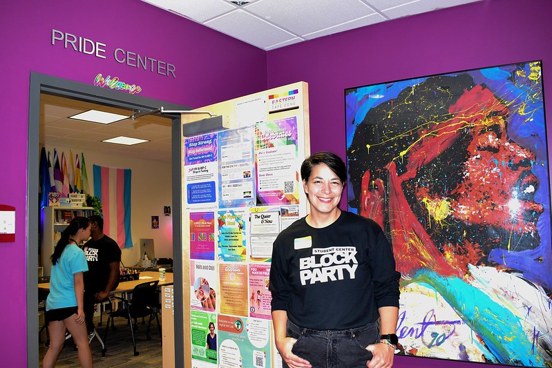 The next stop was the Pride Center. It offers “a physical footprint at Eastern’s campus for the LGBTQIA+ community and allies,” said Rachel Betts, a graduate intern for the Pride Center. She said she enjoys how “undergraduates come in everyday and leave with a better sense of who they are.”