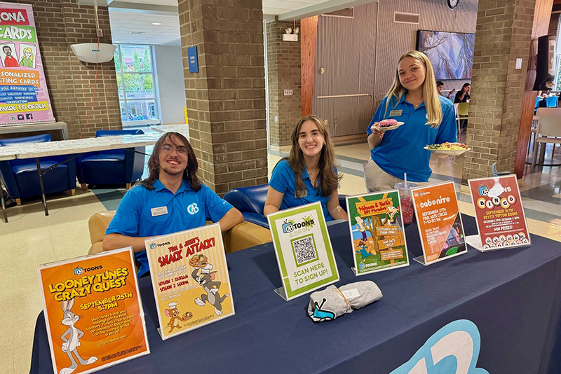 Throughout the week, students engaged in a variety of events inspired by classic cartoons. During Promotion Days, they learned about upcoming activities, listened to theme songs, spun a prize wheel and met new people. During the charcuterie board “teaching kitchen” with Eastern Eats, participants created their own charcuterie boards and received a custom CAB-branded board to take home.