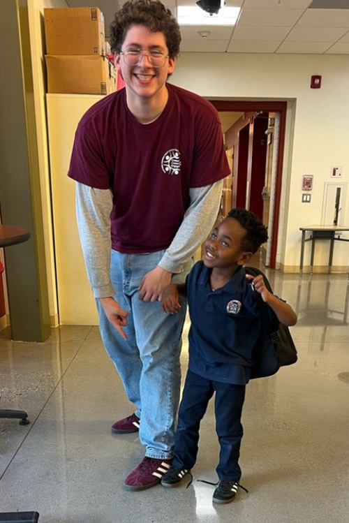 In addition to volunteer management, coordinating communication between community partners and transportation duties, junior history and social science major Jayson Caballero facilitates Mansfield Book Buddies, Windham Youth Mentoring and Covenant Food Rescue.