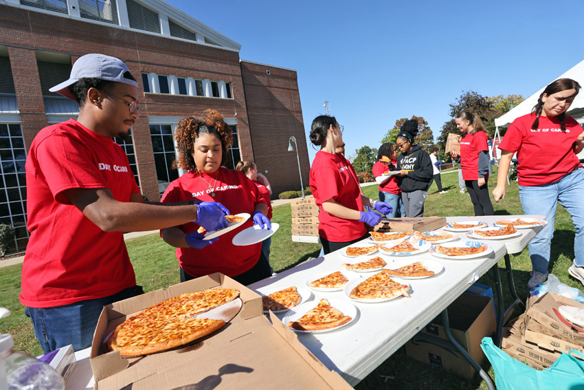 The Center for Community Engagement’s annual Day of Caring, in partnership with United Way, mobilized more than 100 volunteers on Oct. 12 to complete community service projects across Windham. Activities ranged from cleaning up to raking leaves and painting posts.