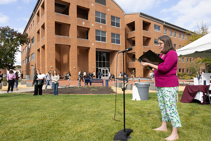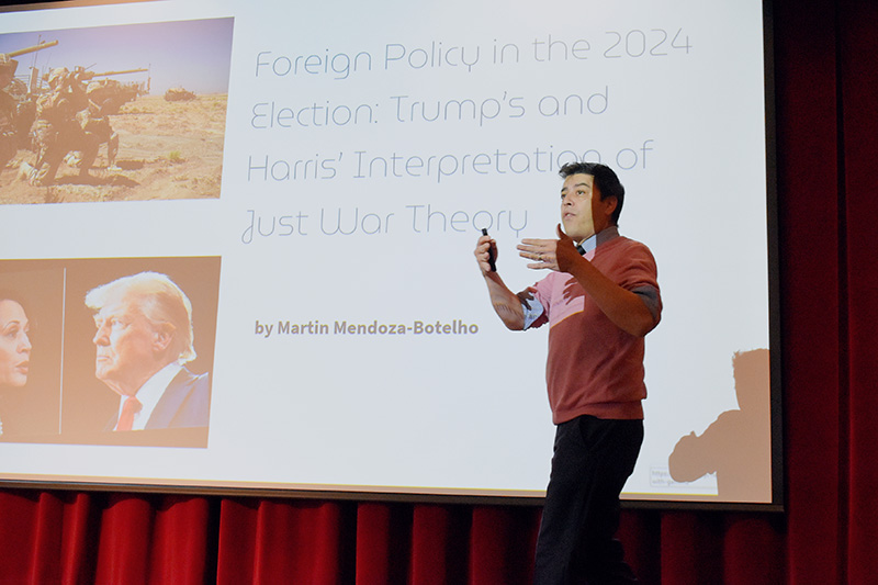 Jennifer Croughwell, president of the Eastern Democrats, outlined her party’s support for affordable housing, childcare and better funding at state universities such as Eastern. “It’s not just Harris versus Trump,” said Croughwell. “Think about the local races. In some ways they are more important than the presidential race.” She also highlighted plans to increase homeownership among young adults.
