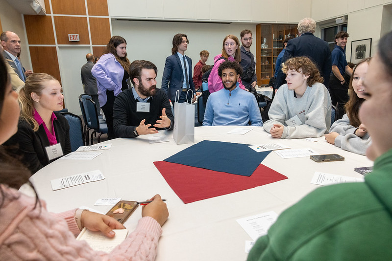 More than 60 students attended the event. Its purpose was “to give our students the chance to meet and learn from the experiences of our alumni,” said Charlie Chatterton, associate professor of business administration. He explained how events like this ease the pressure of learning to network. “Some of the students are younger or less experienced, and this gives them an opportunity to interact in a supportive environment,” he said.