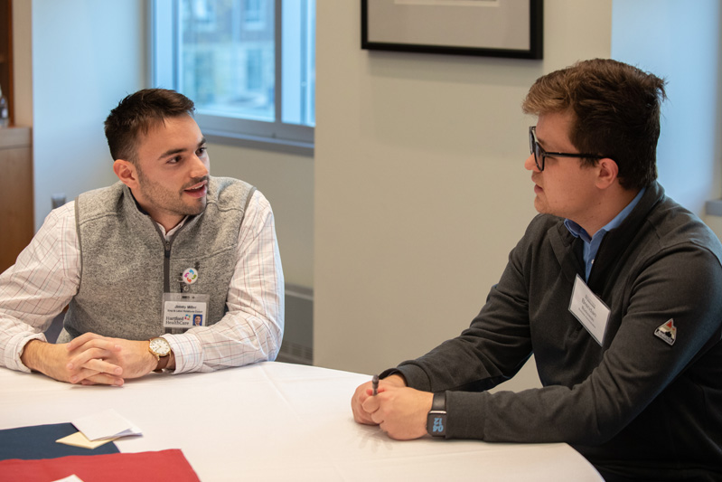 Students also had the opportunity to network with professionals in human resources, including both HRLA members and Eastern alumni. Represented companies included Hartford HealthCare (HHC), Chelsea Groton Bank and Travel Insured International.