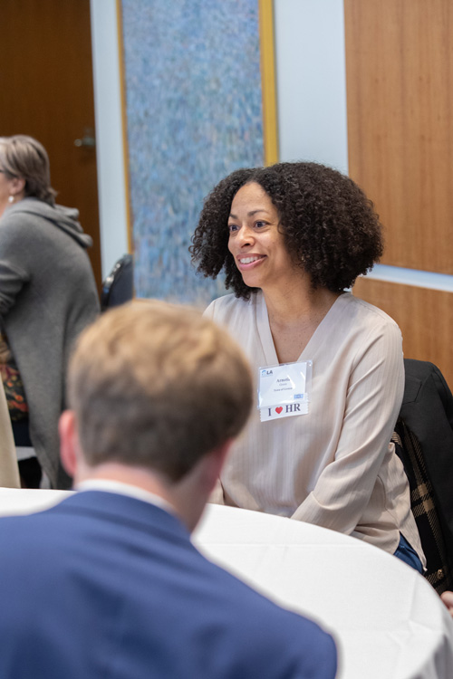 For students, the event not only offered valuable networking opportunities but also inspired new career aspirations. Ava Sanchez, a student attendee, shared how the event transformed her perspective. “When I entered the room, I had little consideration of HR being a field I would want to go in,” she said. She shared that after the event, “I called my parents to share my newfound passion for HR. The experience was truly eye-opening.”