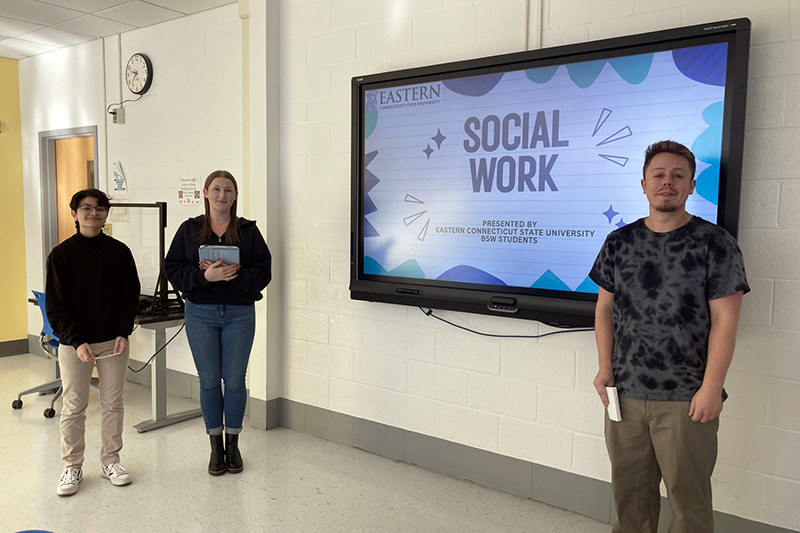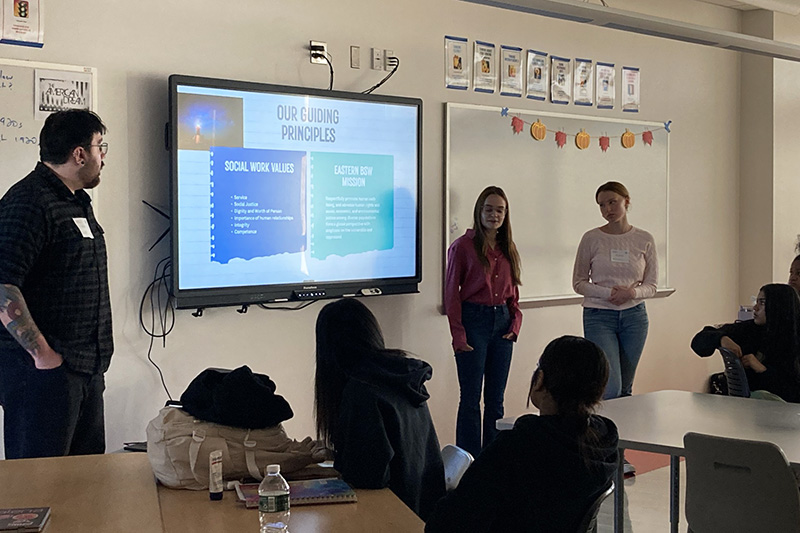 Thirty-two social work majors at Eastern Connecticut State University conducted a series of interactive presentations for local high school and community college students this fall semester. Titled “Professional Advocacy Networking,” the eight talks introduced curious mental health professionals to the field of social work and its many values and opportunities.