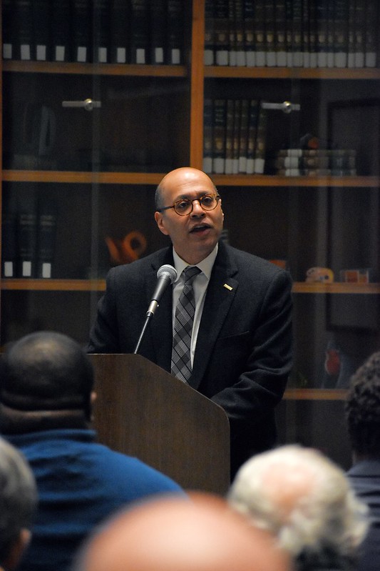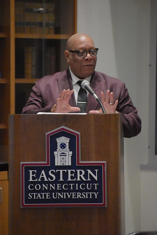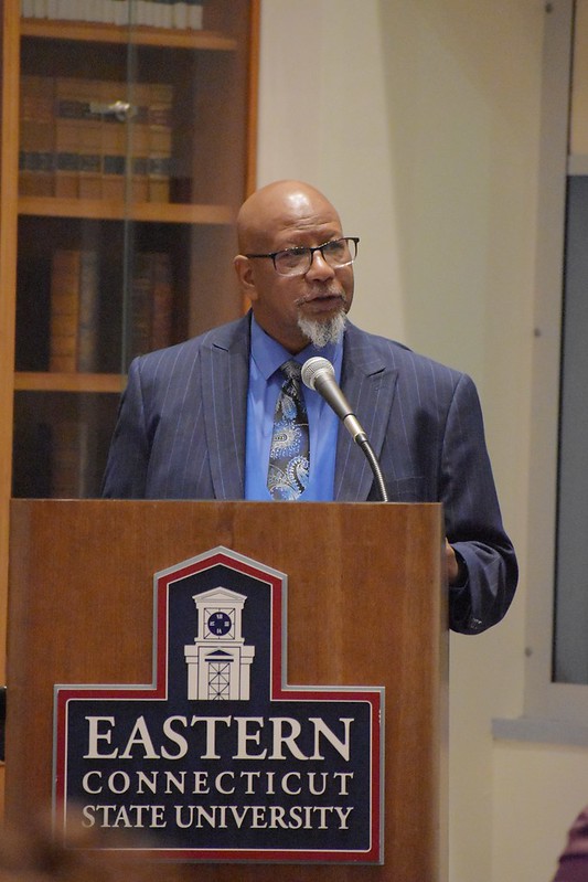 Scot X. Esdaile, president of the Connecticut State Conference of NAACP Branches, shared the history of the NAACP, the largest and oldest civil rights organization in the world. He explained that for 115 years, the organization has fought against housing discrimination, unequal education and segregation in restaurants, hotels, bathrooms and public transportation.