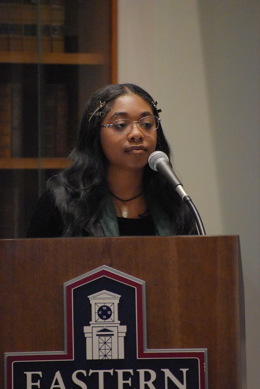 Hatshepsu Coutain-Julien, president of Eastern’s NAACP chapter, provided updates on the organization’s work regarding linguistic racism and its damaging impact on communities, health equity for underrepresented students who lack relationships with healthcare providers and environmental justice, which affects daily life.