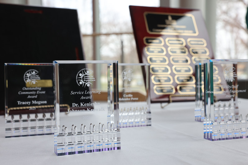 Three Community Engagement Awards rounded out the winnings: Cecilia Meléndez Pérez earned the student award, while Student Activities Director Casey Kensey received the faculty/staff distinction. Makeila Robles won the Community Partner Community Engagement Award.