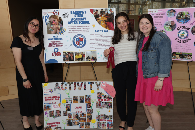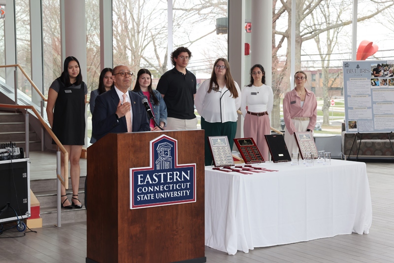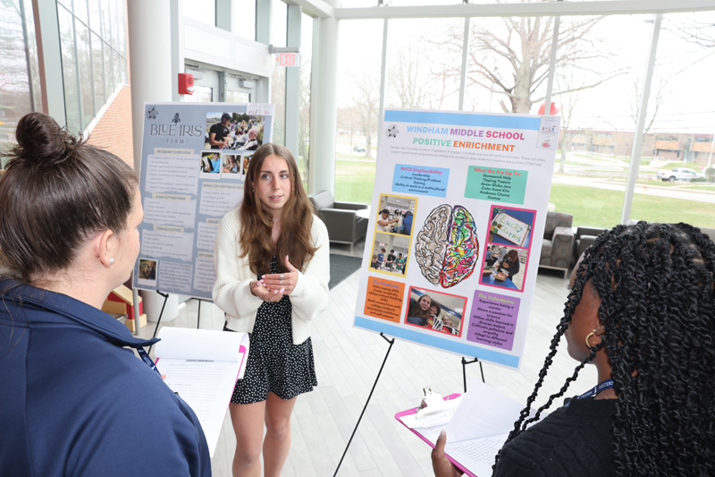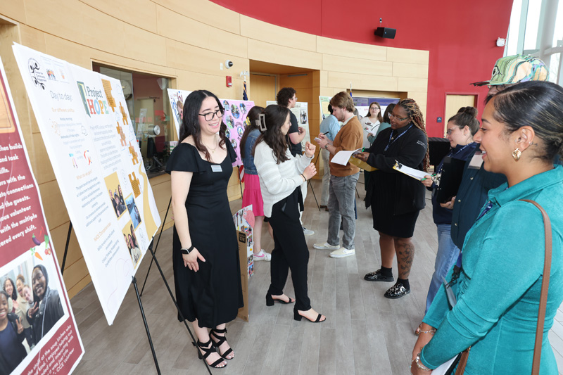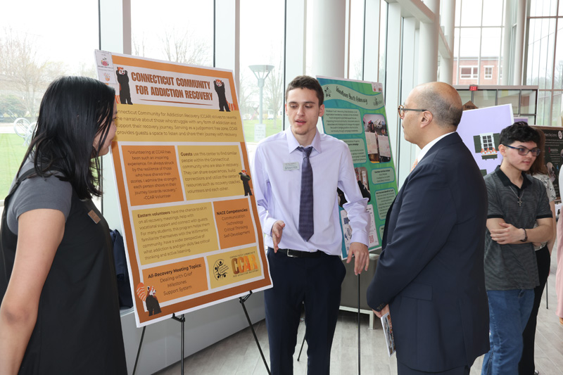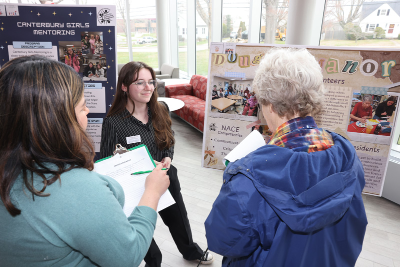Eastern Connecticut State University’s Center for Community Engagement (CCE) hosted its CCE Service Expo and Awards ceremony on April 15 in the Fine Arts Instructional Center Susan Sukman McCray Foyer to celebrate the ongoing impact of student leaders and volunteers. The expo highlighted 19 community programs. In total for the 2024-25 academic year, approximately 800 students volunteered 13,300 hours through these programs and other special events.
