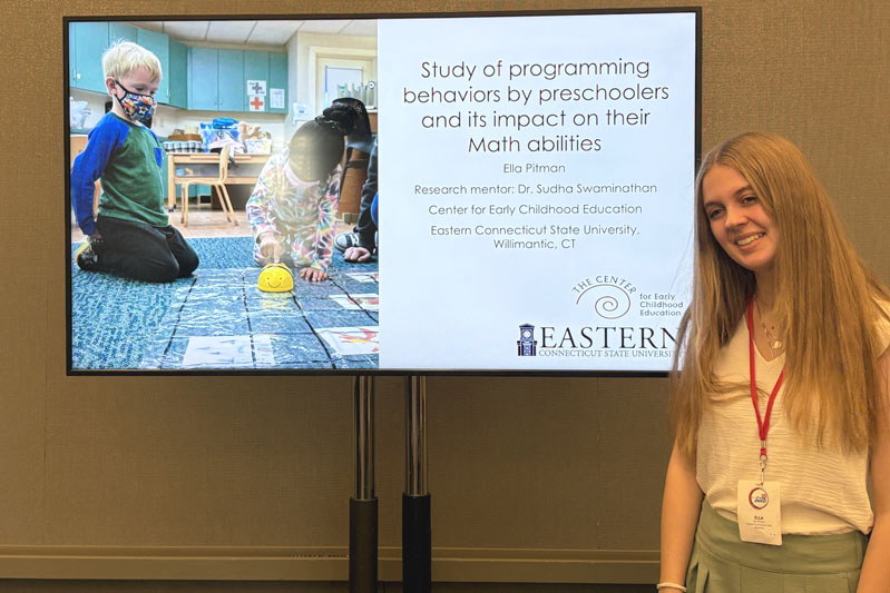 The conference “offers a forum for premier undergraduate students to demonstrate their exceptional scholarship,” said Sudha Swaminathan, professor of early childhood education and faculty supervisor for the trip. She noted that Eastern students showcased their work alongside prestigious institutions such as Princeton University.