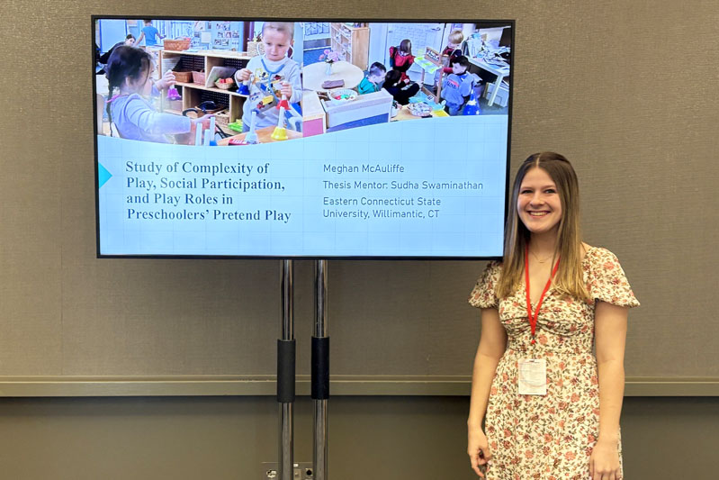 Meghan McAuliffe, a senior studying early childhood education, special education, and sociology, explained the importance of Eastern’s resources to undergraduate research. McAuliffe studied the complexity of play, social participation, and play roles in preschoolers.