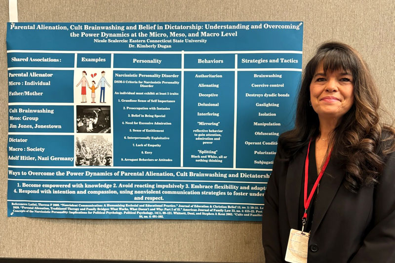 During the fall, senior sociology and psychology major Nicole Scalercio found a strong association between parental alienation and cult brainwashing. When she made the realization that dictatorships tend to have similar characteristics, Scalercio continued her research and found a strong association between the three dynamics.