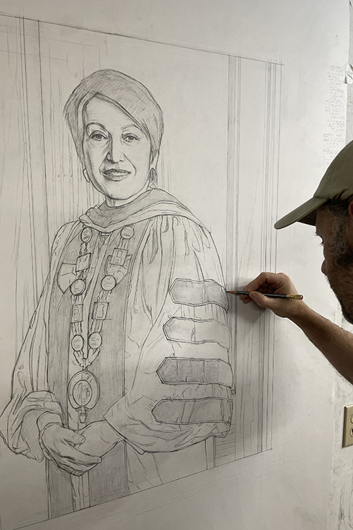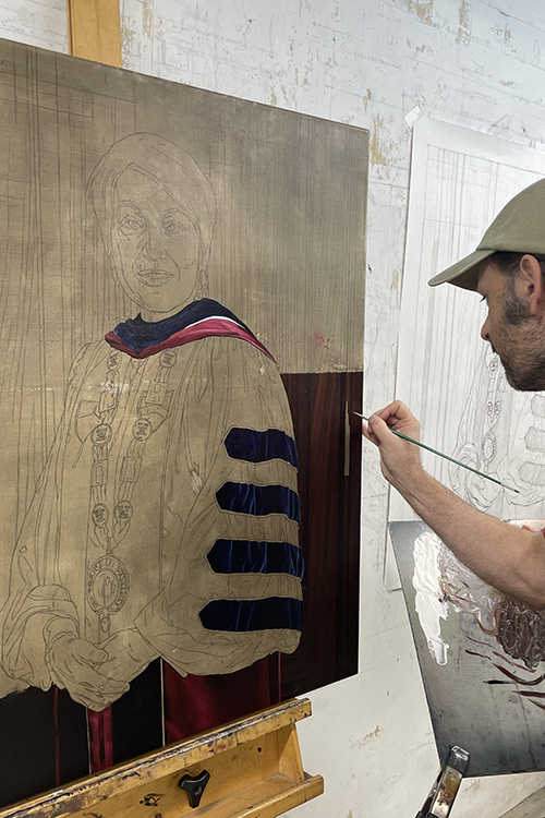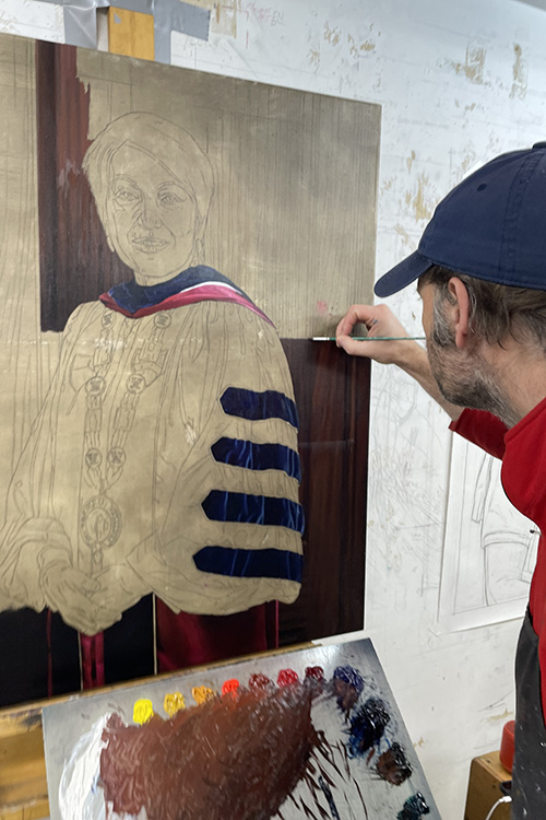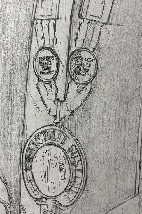 Montmeat’s portrait of Núñez features rich colors and precise details down to the names of prior Eastern presidents on the President’s Medallion chain.