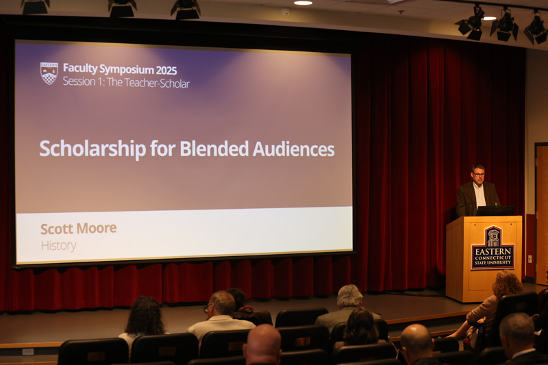Eastern President Karim Ismaili praised the “intellectual energy” brought to the event. “This symposium has reaffirmed what I have come to know about Eastern: that we are a community of teacher-scholars deeply committed to inquiry, engagement, and impact,” he said.