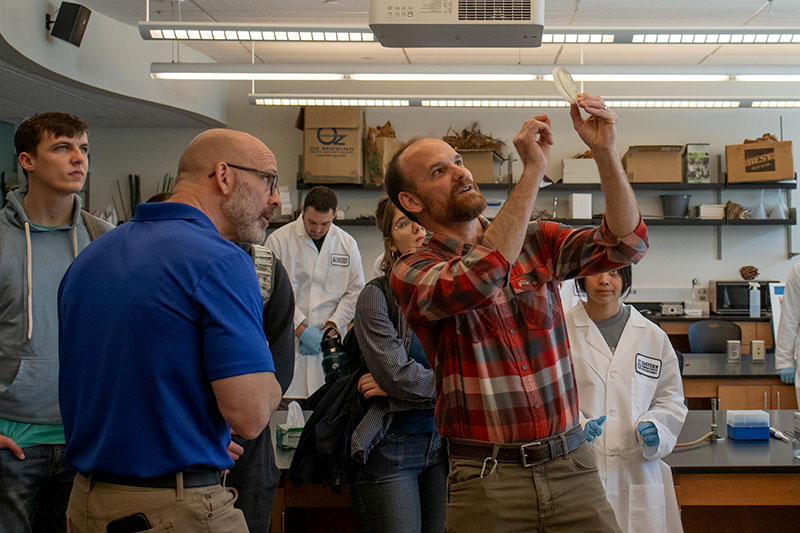 This year marks the third year NFA science teacher Jason Croteau has brought his students to the biology labs at Eastern. Hulvey originally reached out to Croteau as a part of his class “Microbes and Disease.” They agreed to send soil samples to Eastern for analysis.