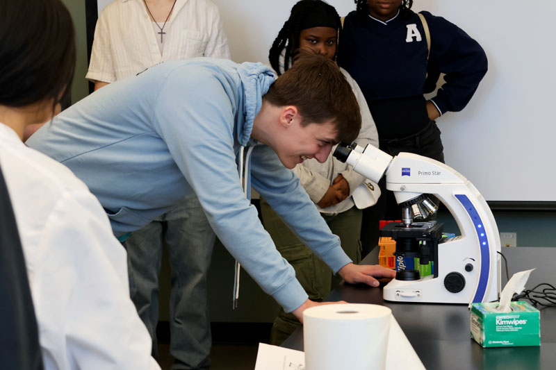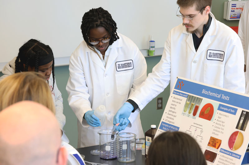 High school students from Norwich Free Academy (NFA) visited Eastern on April 23 for “Tiny Earth Day,” a global project that aims to inspire students in science and address antibiotic resistance through student-sourced antibiotic research.