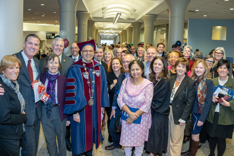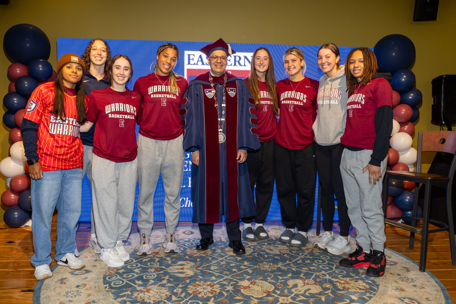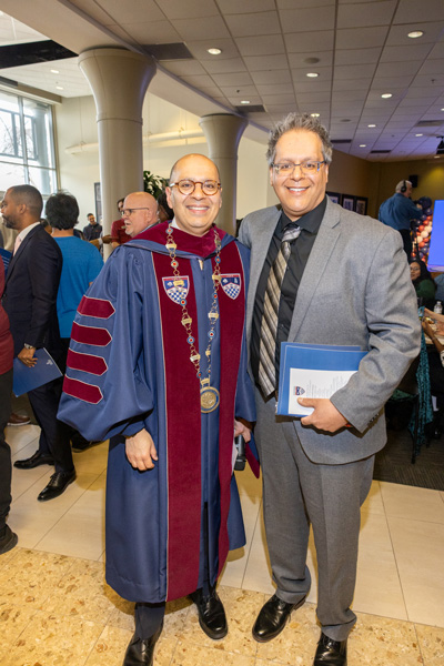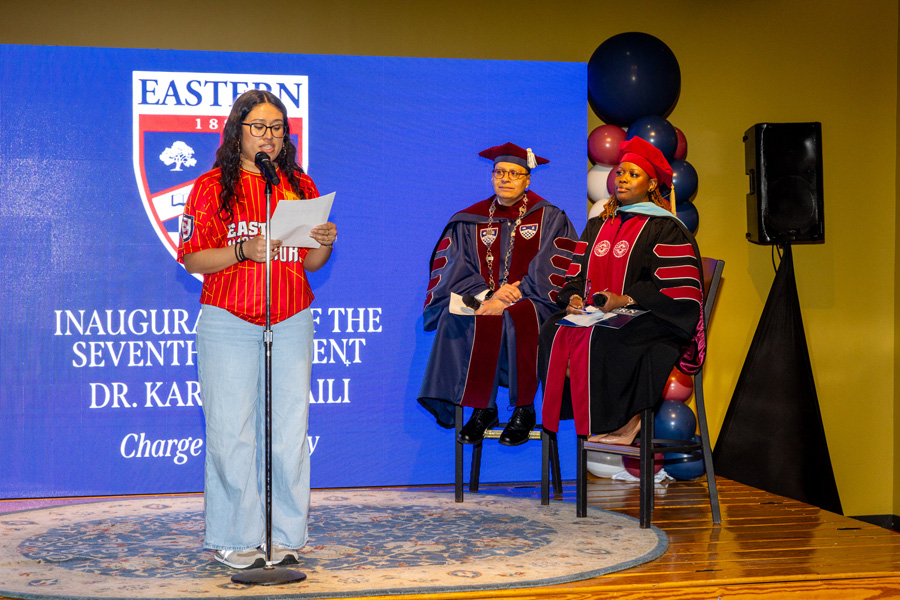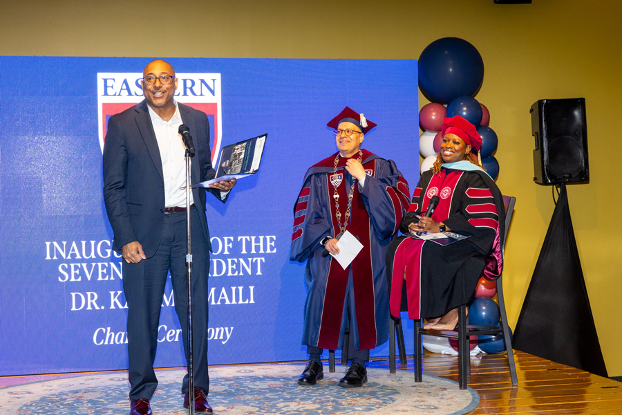 Following the investiture, the Concert Hall audience paraded to the Student Center for a lively “charge” ceremony and reception. Led by Dean of Students Kemesha Wilmot, more than 10 campus and community representatives formally charged Ismaili to uphold Eastern’s values as a student-centered, academically rigorous, community-engaged, employee-supportive, and culturally inclusive institution.