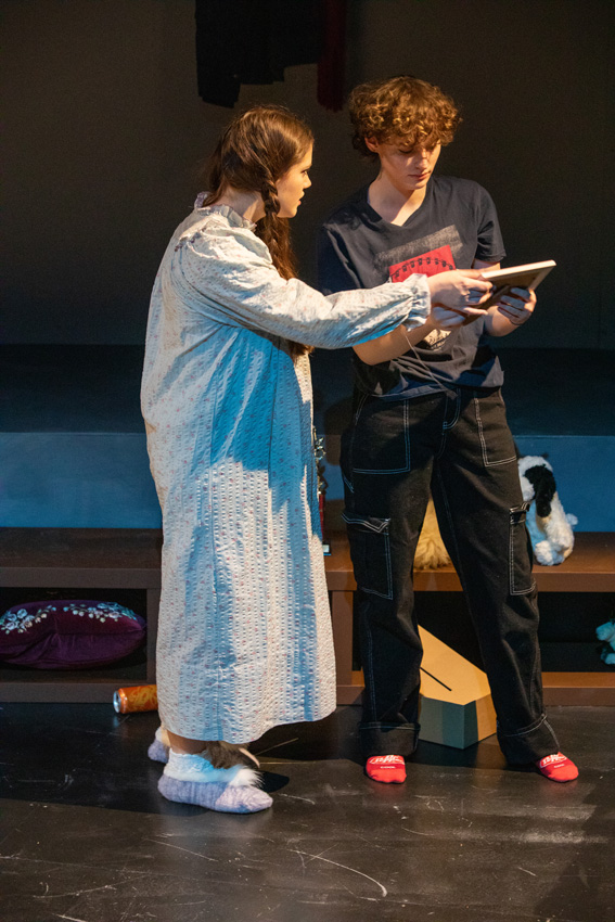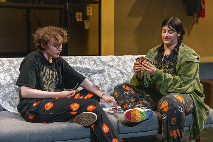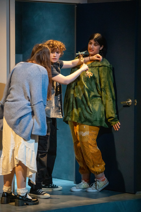 As Max endures passive-aggressive remarks about his identity from his aunt, he forms a reluctant friendship with his sympathetic cousin Jeanie (Nora Mange ‘28) and her best friend, a transgender male named Jay (Didismay Yedra ‘26). Max’s presence in a more conservative household also forces his cousin Riley (Meghan Wrobel ‘25) to confront their identity, which they hide under a thick layer of overcompensation and resentment for Max.