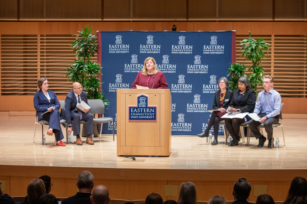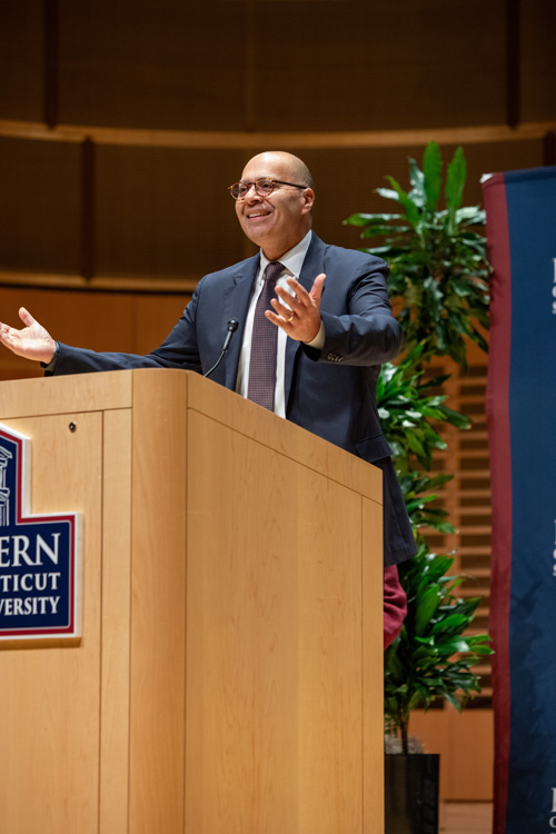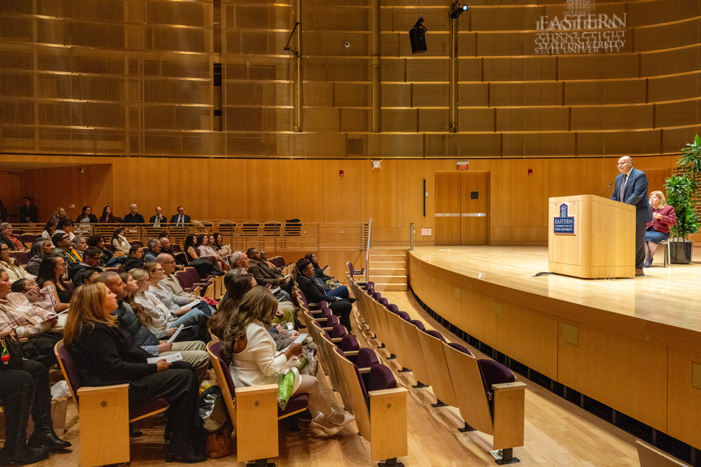 “Hold on to the curiosity that has been created here, that openness and confidence in your ability to live forward with purpose,” said Eastern President Karim Ismaili to fall semester graduates during a special reception on Dec. 3 in the Fine Arts Instructional Center foyer.