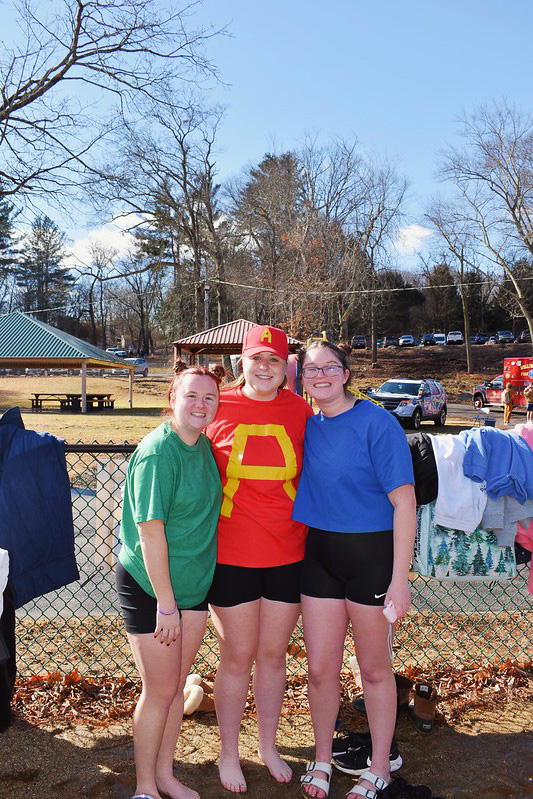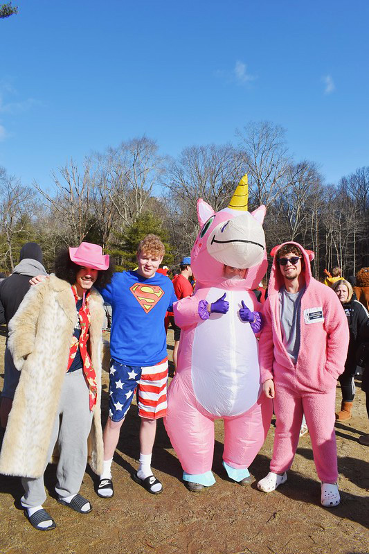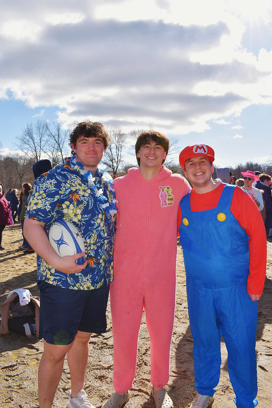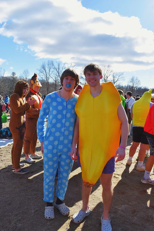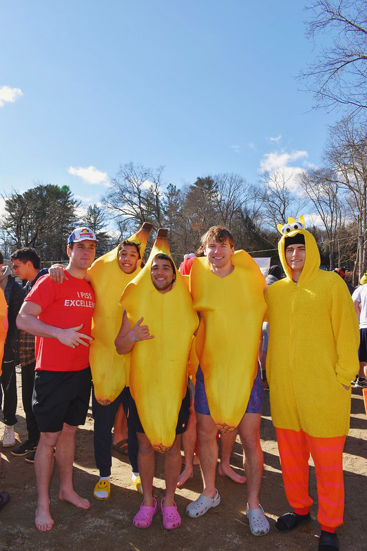 A signature part of the plunge is the creative and often humorous costumes participants wear when diving into the freezing water. “Mostly they are just running jokes for the teams,” Allari said. “Sometimes we plan stuff with the boys. You’ll see at least five bananas around.”