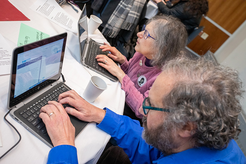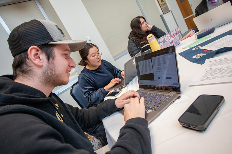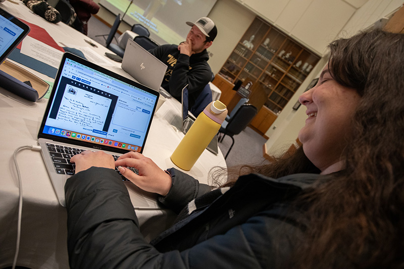 Students and faculty members at Eastern Connecticut State University gathered in the Paul E. Johnson Community Conference Room of the J. Eugene Smith Library to participate in the annual nationwide Douglass Day “transcribe-a-thon” on Feb. 19. The event celebrated the writings and achievements of African American orator and abolitionist Frederick Douglass and his contemporaries as well as the recorded achievements of African Americans.