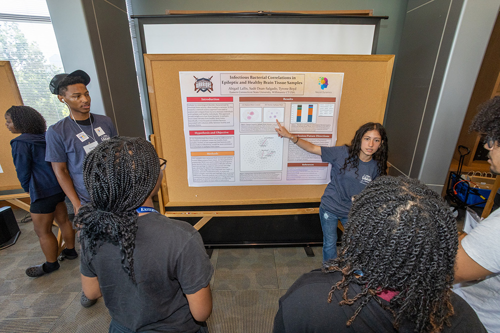 Eighteen first- and second-year students majoring in STEM fields participated in a residential program this July meant to support historically underrepresented students in the sciences. Modeled after the National Science Foundation’s Louis Stokes Alliances for Minority Participation (LSAMP) program, the two-week Eastern-funded initiative included a transitional “bridge” program for incoming first-year students and a research institute for sophomores.